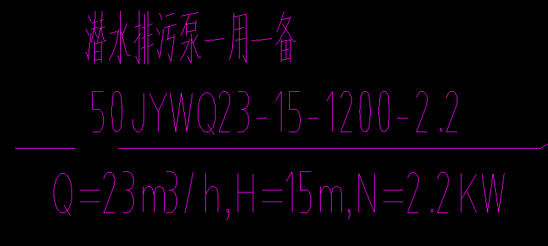 口径为50毫米,出水量23m³每小时,扬程为15米,搅匀范围1200毫米,泵的功率为2.2千瓦的自动搅匀排污泵。